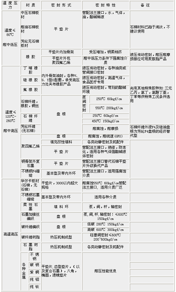 選擇墊片的材料主要取決于下列三種因素: 溫度 壓力 介質(zhì)