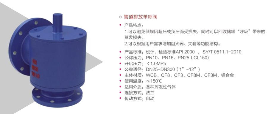 管道排放單呼閥